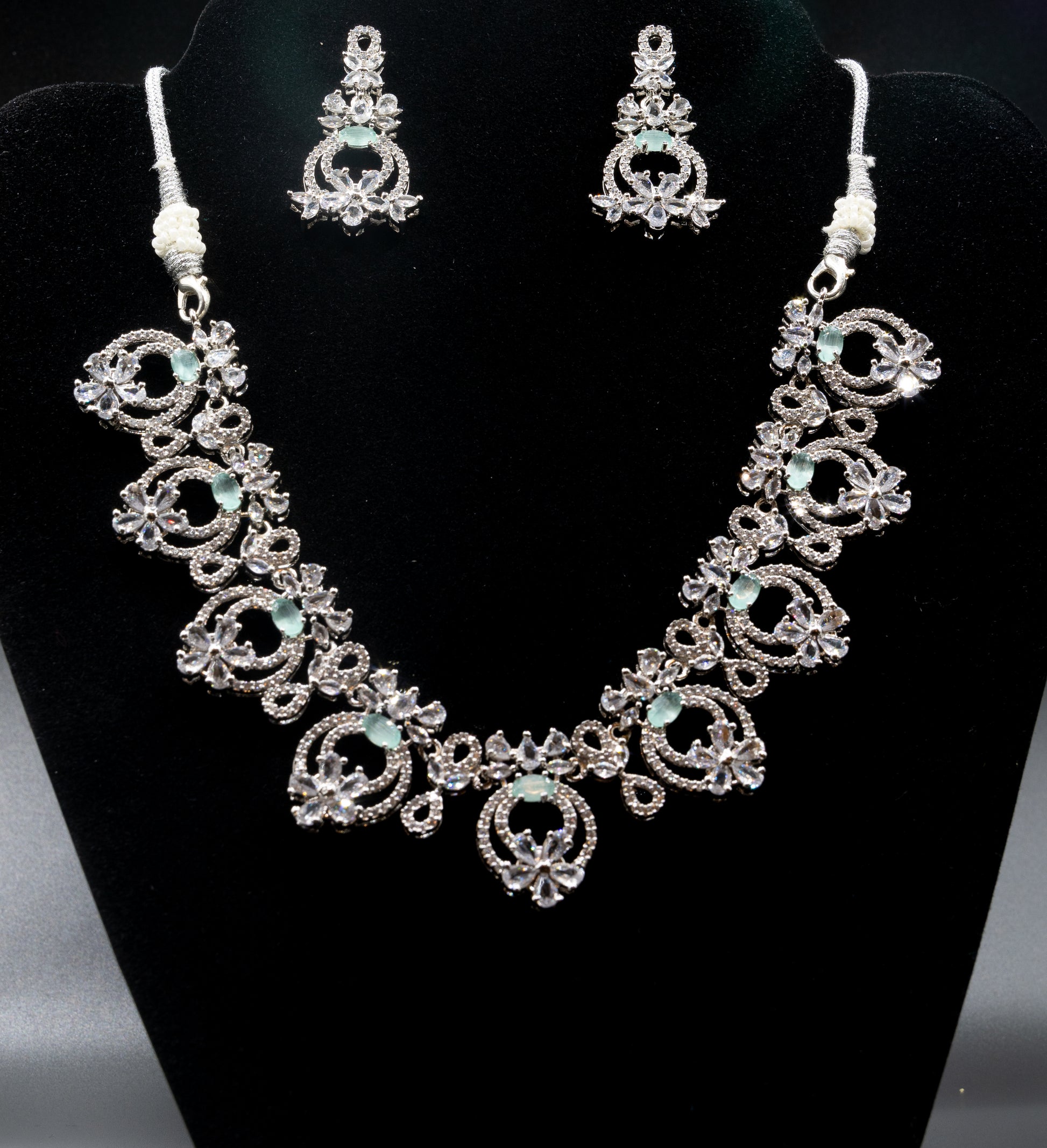 Crafted with stunning silver plating and adorned with beautiful blue stones, this necklace set is a must-have for any jewelry collection. Elevate your look with its elegant design and add a touch of sophistication to any outfit. Perfect for special occasions or everyday wear.